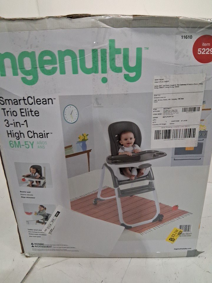 Ingenuity SmartClean Trio Elite 3-in-1 High Chair - Slate (MODEL: 5229 / 11610)