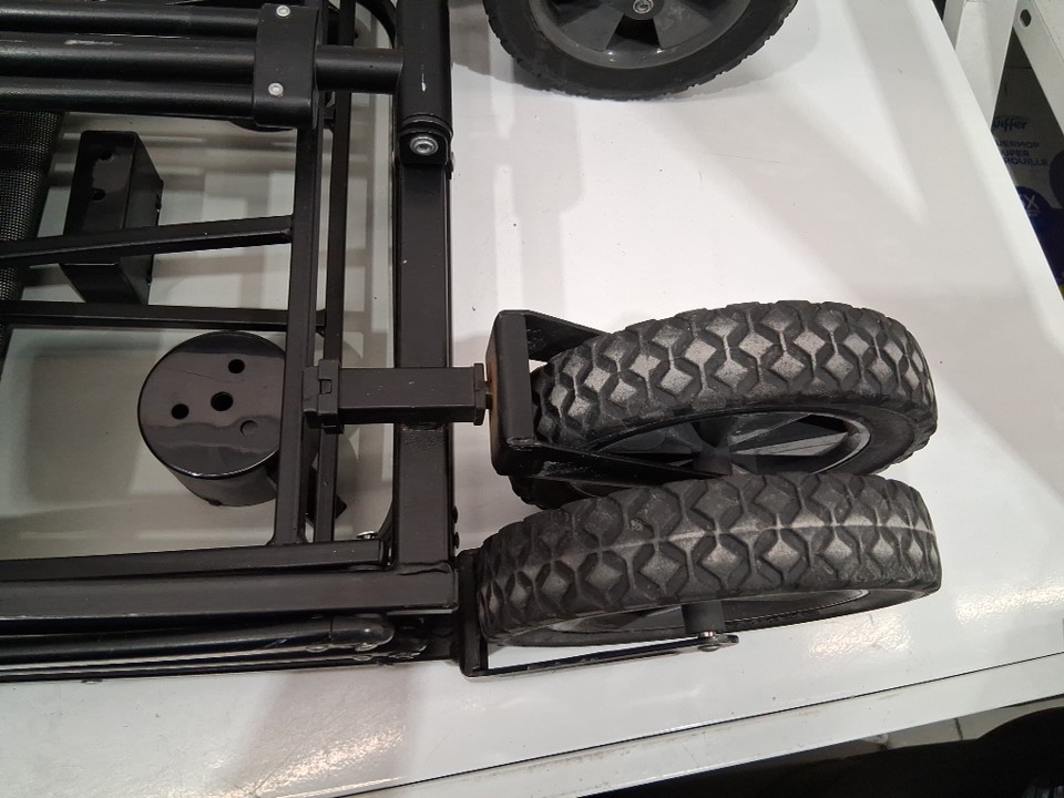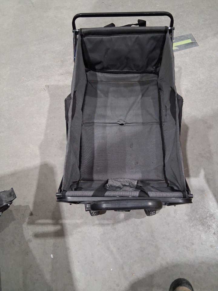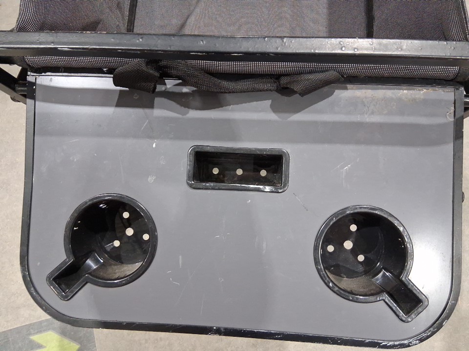 there is staining on the inside of the wagon, the metal bars have scuffing and the side table has something sticky from use (see photos)