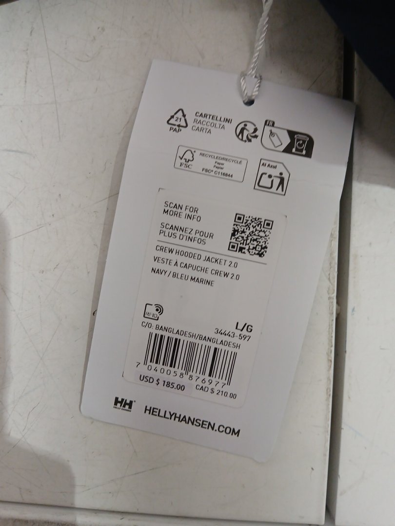 MEN'S HELLY HANSEN CREW 2.0 midlayer waterproof JACKET - size large - navy (style: 34443-597)