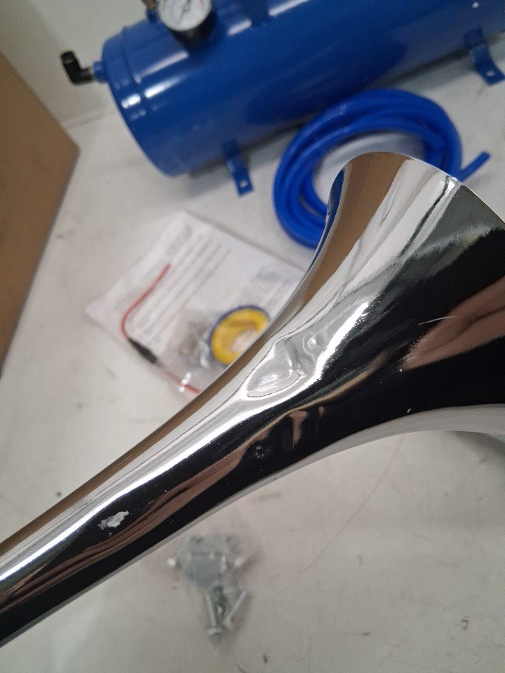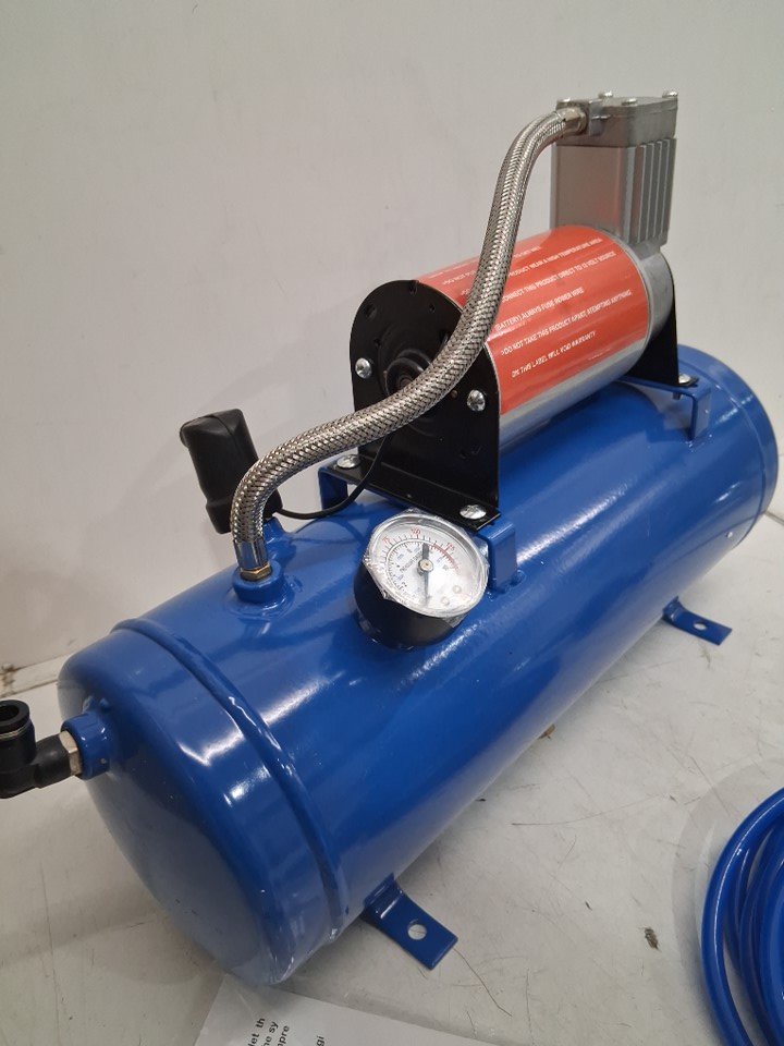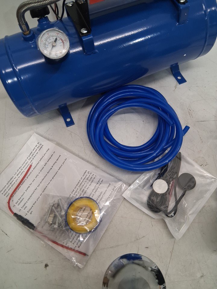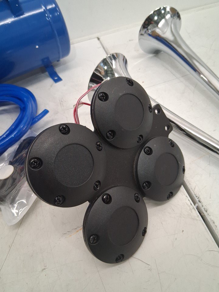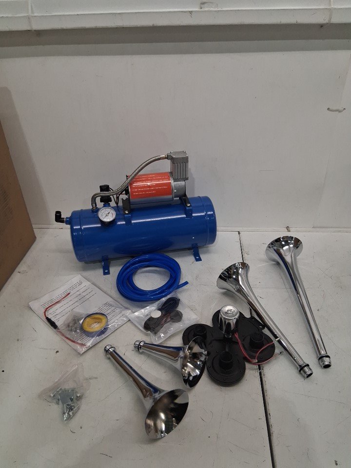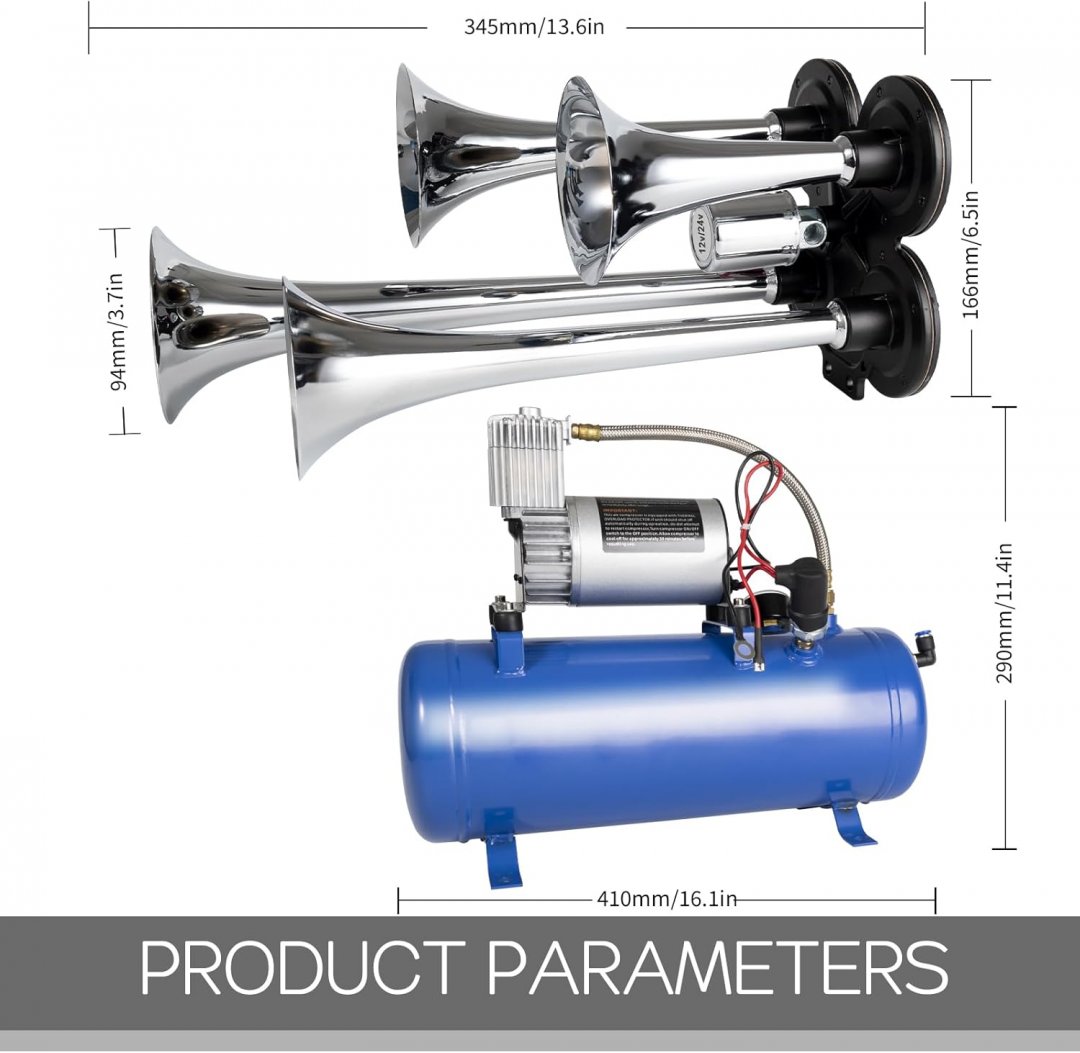 AOLIHAN Train horn kit with Air Tank and Four Trumpet Air horns for trucks - blue / silver