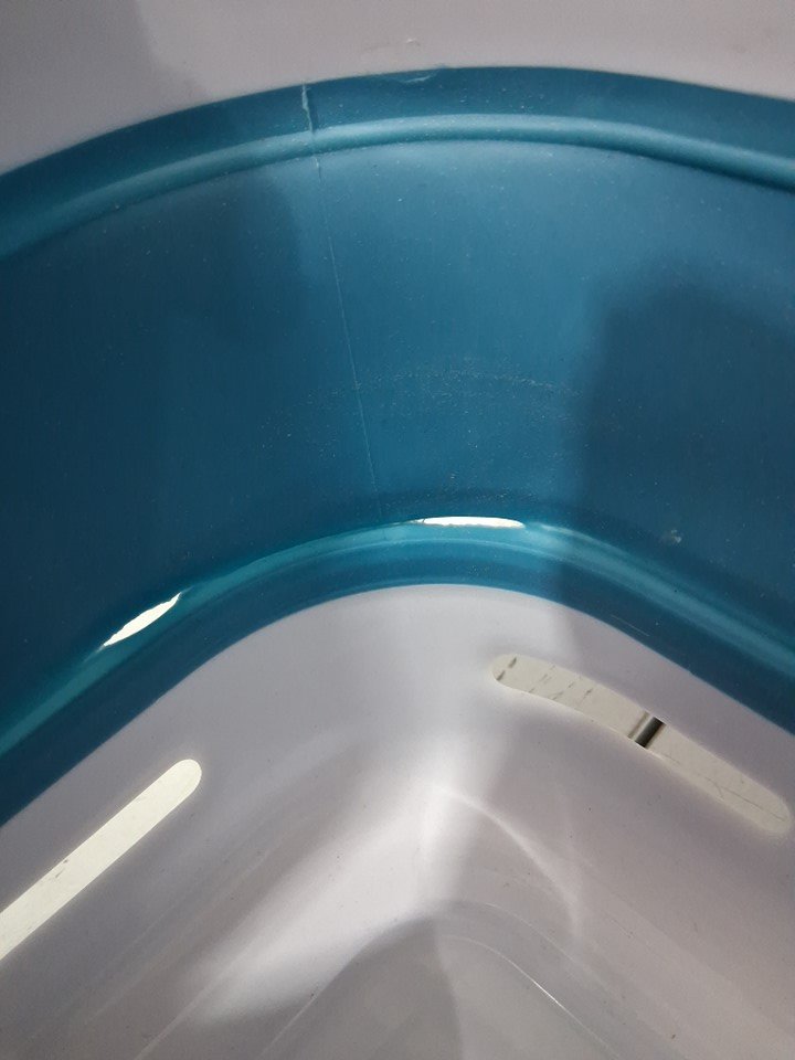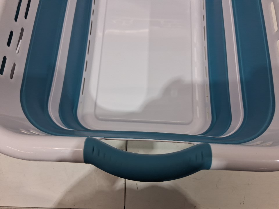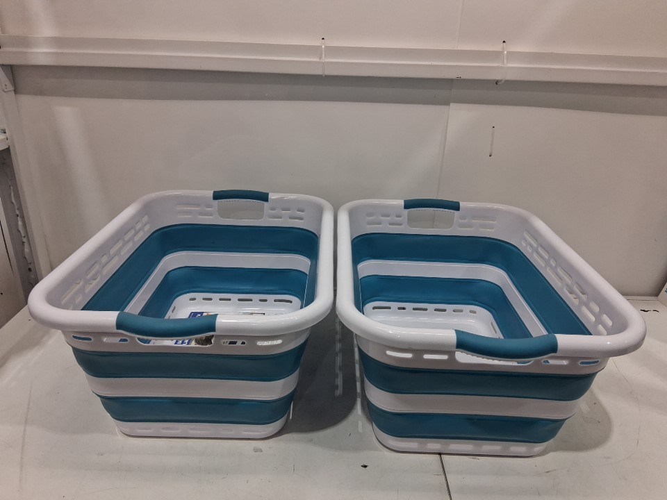 Both baskets have minor scuffs and scratches, likely from shipping and handling. In addition, one basket has slight wear and holes near the bottom rubber (see photos).