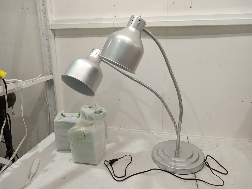 Carivia 2-head flexible Food Heat Lamp with 3 bulbs - 500w - 185° temperature - 26.8" x 10.6" - silver