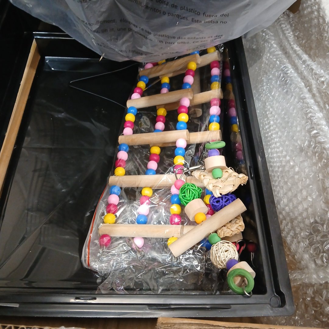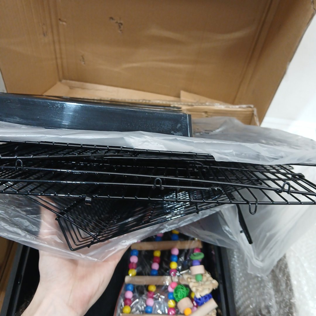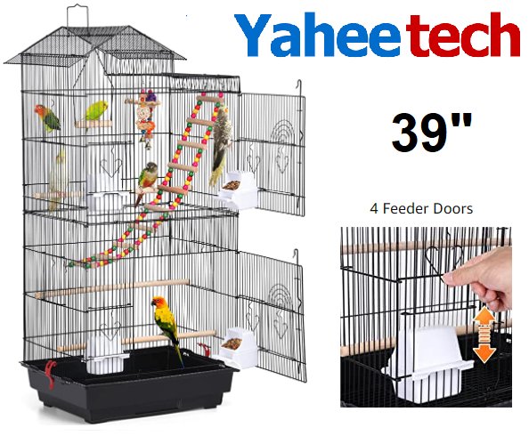 YAHEETECH ROOF TOP BIRD CAGE FOR SMALL BIRDS WITH TOYS & FEEDER DOORS - 39" - BLACK (MODEL: 591471)