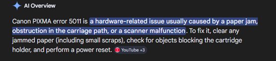 Tested for power however printer shows error 5011 error code. Ink inside machine, unable to confirm amount of ink inside.
