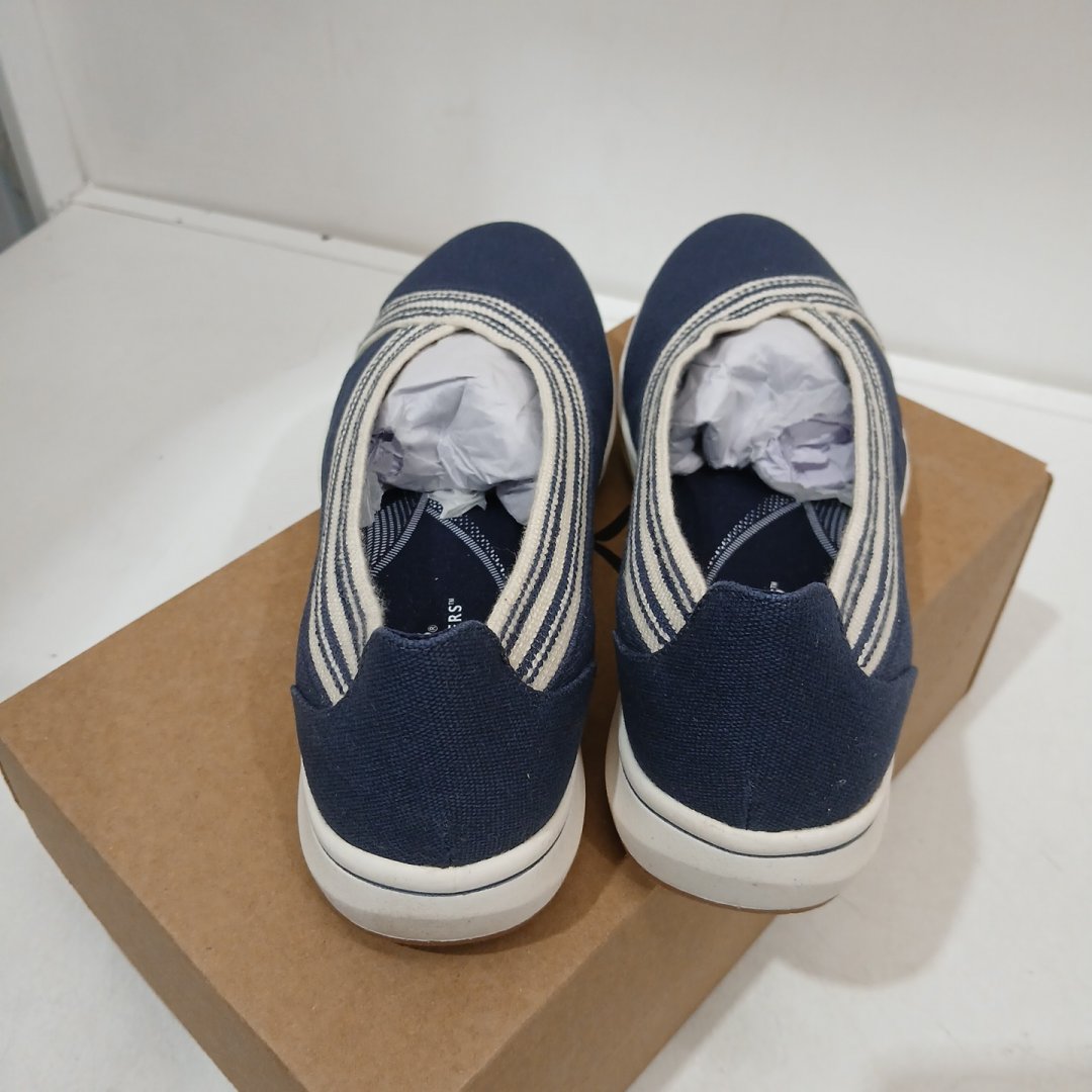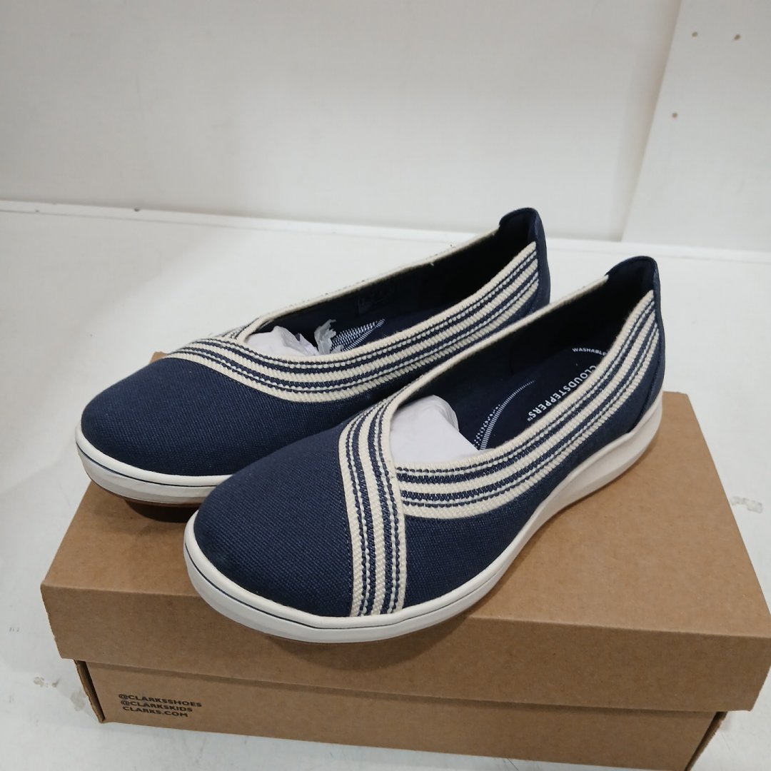 WOMEN'S CLARKS CLOUDSTEPPER BREEZESKY AIR SLIP-ON SHOES - SIZE 7.5 - NAVY