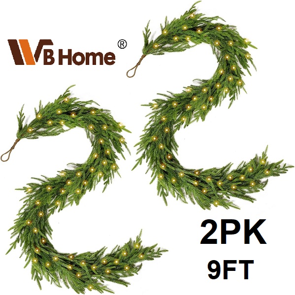 2pk wbhome real touch pine christmas garland - 9ft - green
