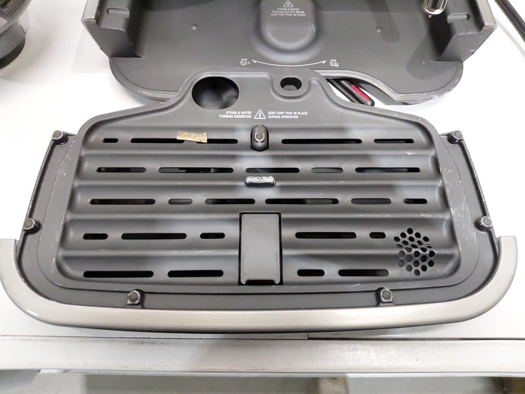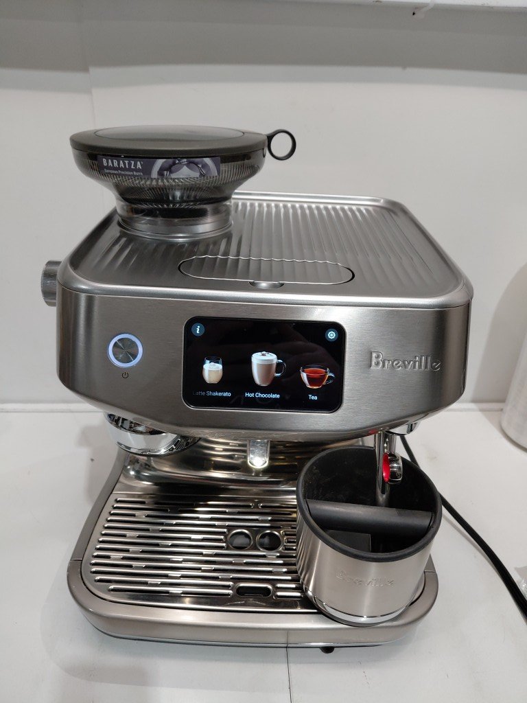 shows signs of previous use (staining, coffee residue) missing portafilter & milk cup has a dent on the right side tested for power.