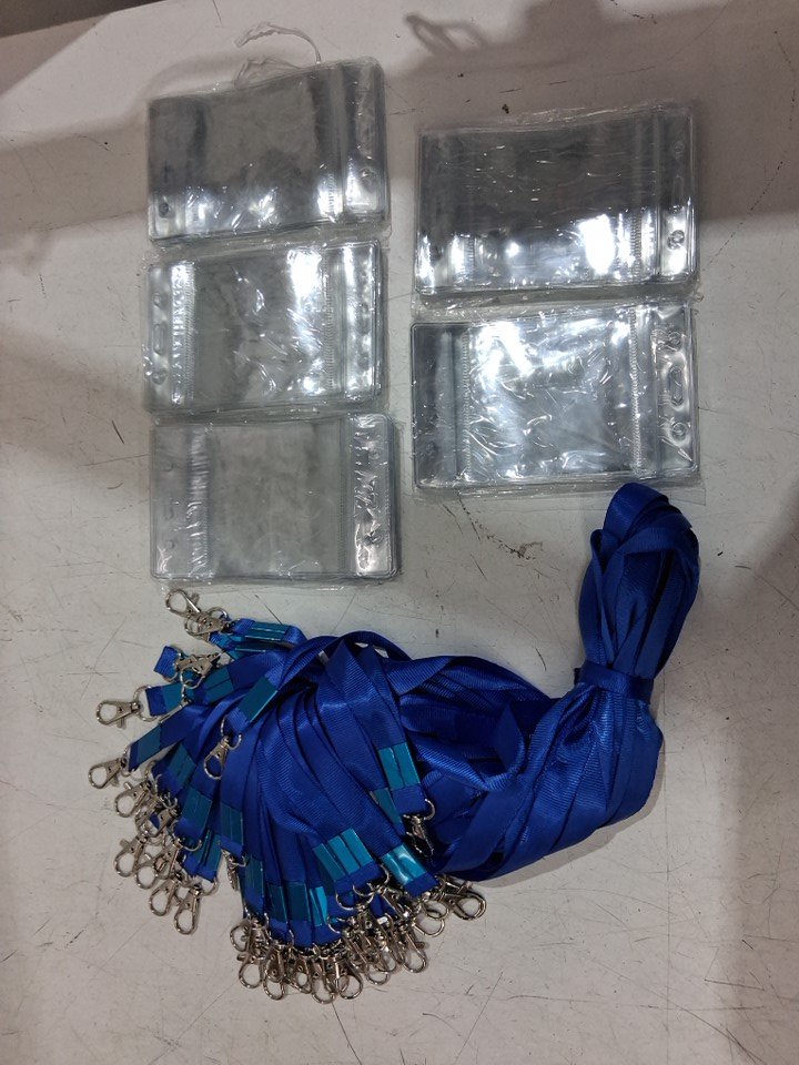 100pc birdfly id badge holders with lanyards - 3'' x 2'' - blue/clear