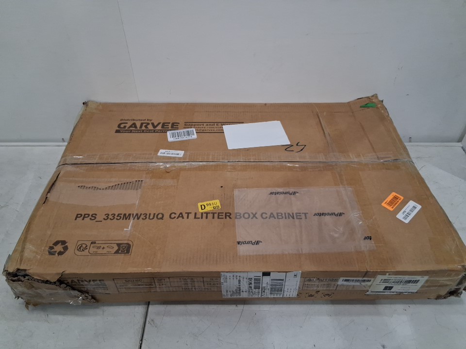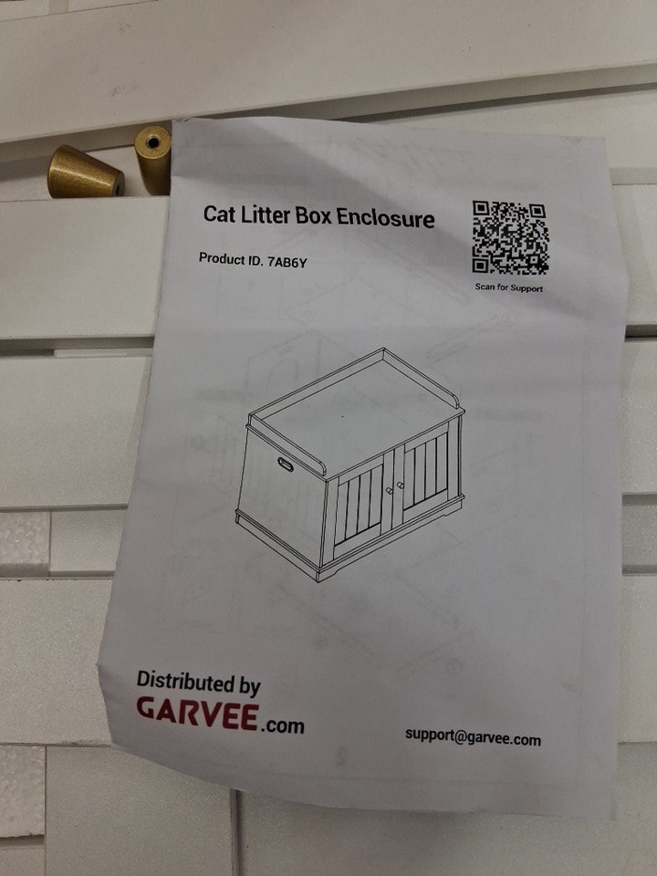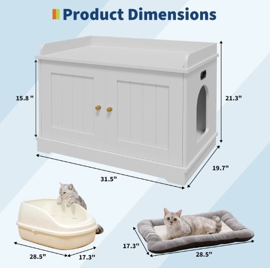 Garvee Cat Litter Box Enclosure Furniture with Barn Door - 31" x 19" x 21" - white (model: pps_335mw3uq)
