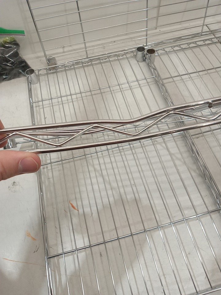 one of the shelves has some bends on the side bars, but other then that it looks to be in good shape. please see photos