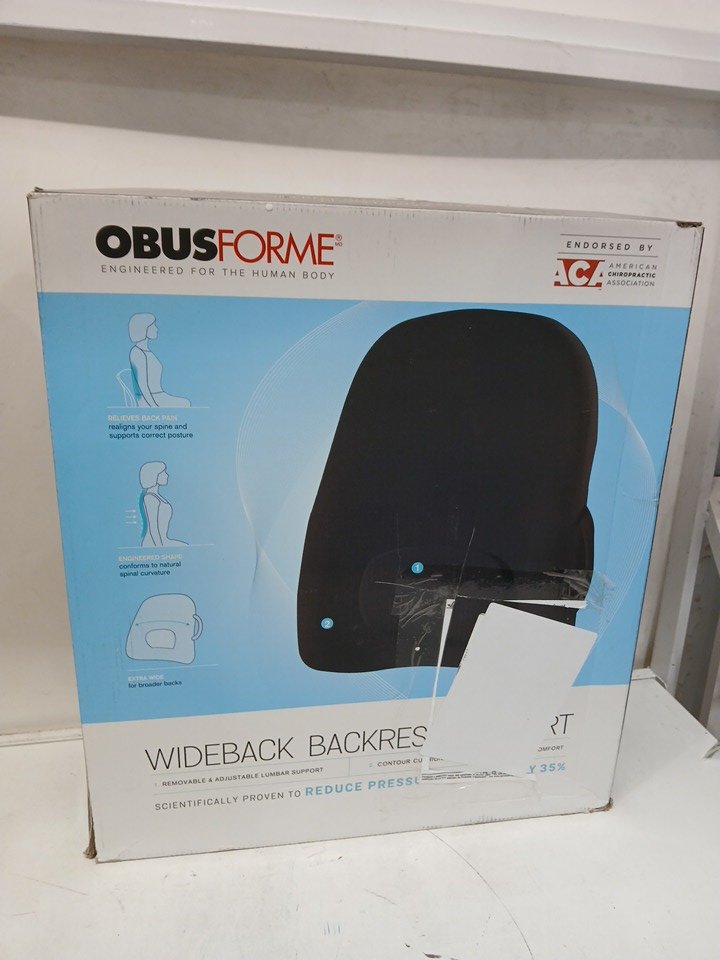 OBUSFORME WIDEBACK BACKREST SUPPORT - 19" x 8" x 22" - BLACK (MODEL: WB-BLK-CB)