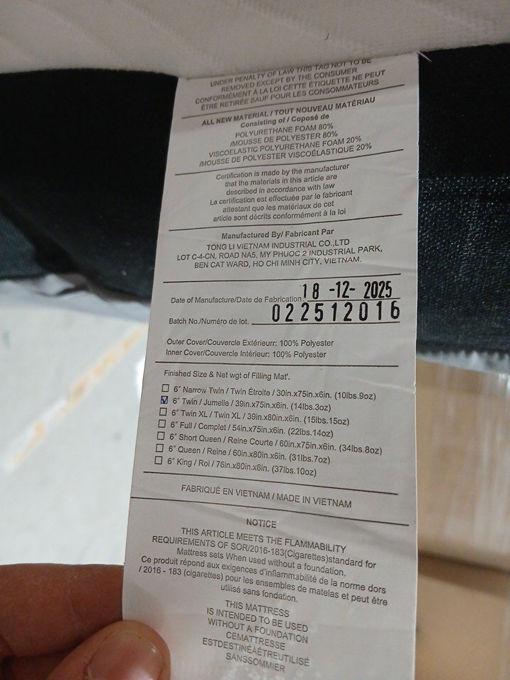 generic soft filling mattress - 6" x 39" x 75" - twin - white/blue/black
