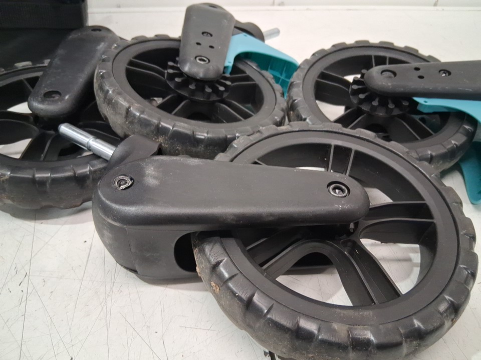 There is some sand/dirt residue, and the wheels have slight wear/dirt due to previous use - see photos