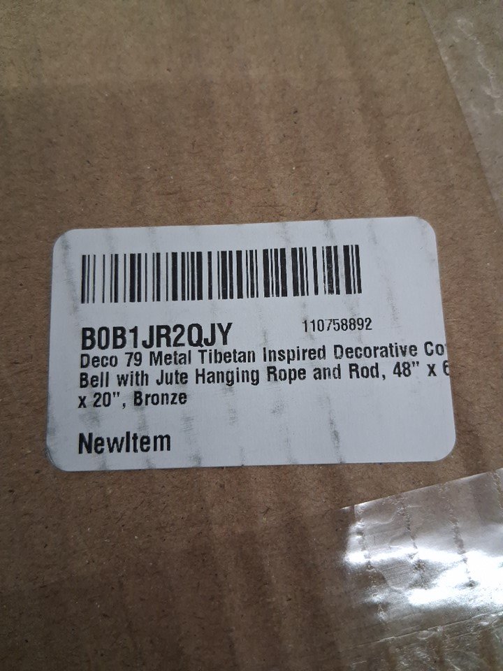Deco 79 Metal Decorative Cow Bell with Jute Hanging Rope & Rod - 48" x 6" x 20" - bronze