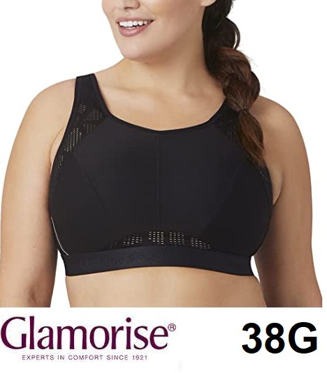 WOMEN'S GLAMORISE SPORT NO-SWEAT MESH BRA - 38G - BLACK (MODEL: 1068).