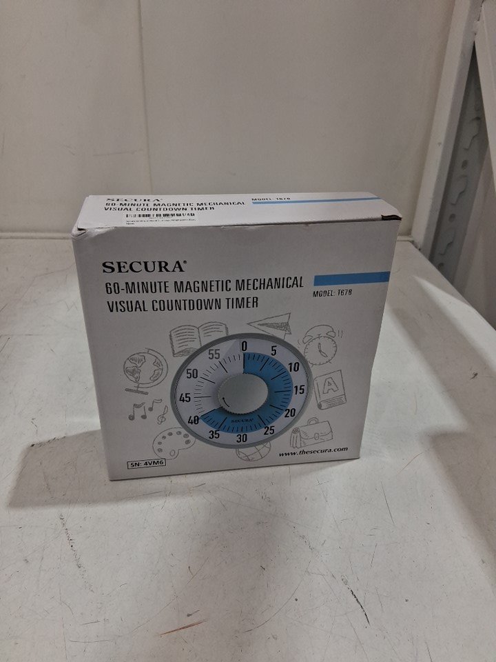 SECURA 60 MINUTE MAGNETIC MECHANICAL VISUAL COUNT DOWN TIMER - WHITE/BLUE (MODEL:T678)