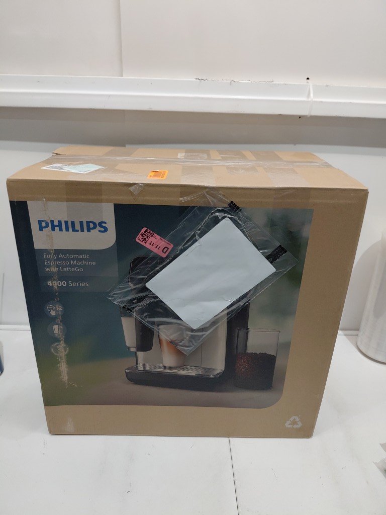 PHILIPS SERIES 4400 LATTEGO ESPRESSO/COFFEE MAKER MACHINE WITH MILK FROTHER and BUILT-IN COFFEE GRINDER - 120V - BLACK/CHROME (MODEL: EP4444)