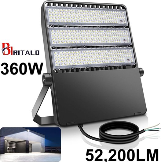 BIRITALO waterproof Outdoor wall mounted LED Stadium Flood Lights - 19" x 23" - 360W - 52200LM - 5500K - Black - (Model: YU1603)