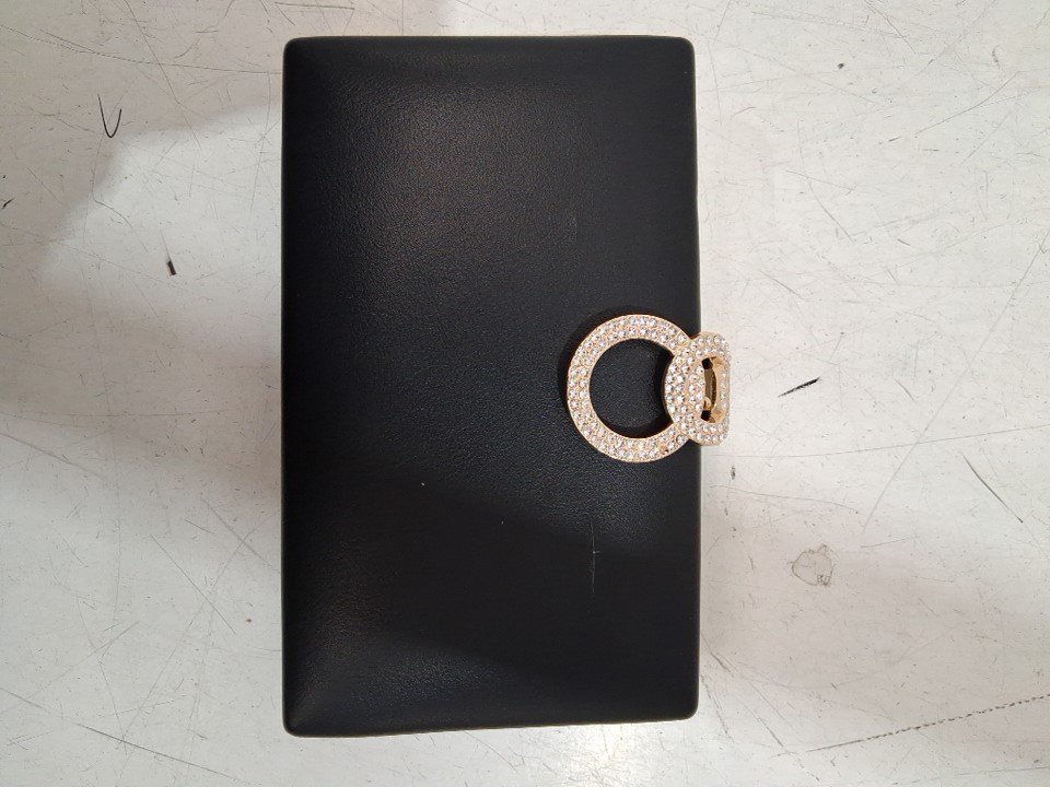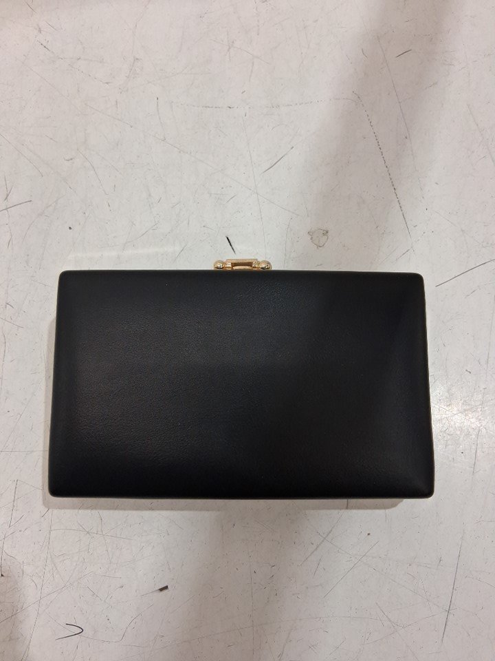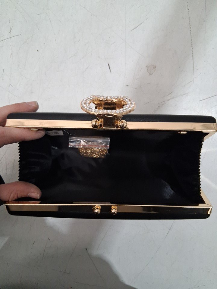 WOMEN'S LEATHER CROSSBODY CLUTCH WITH GEM CLASP - 9'' X 4'' - BLACK/GOLD