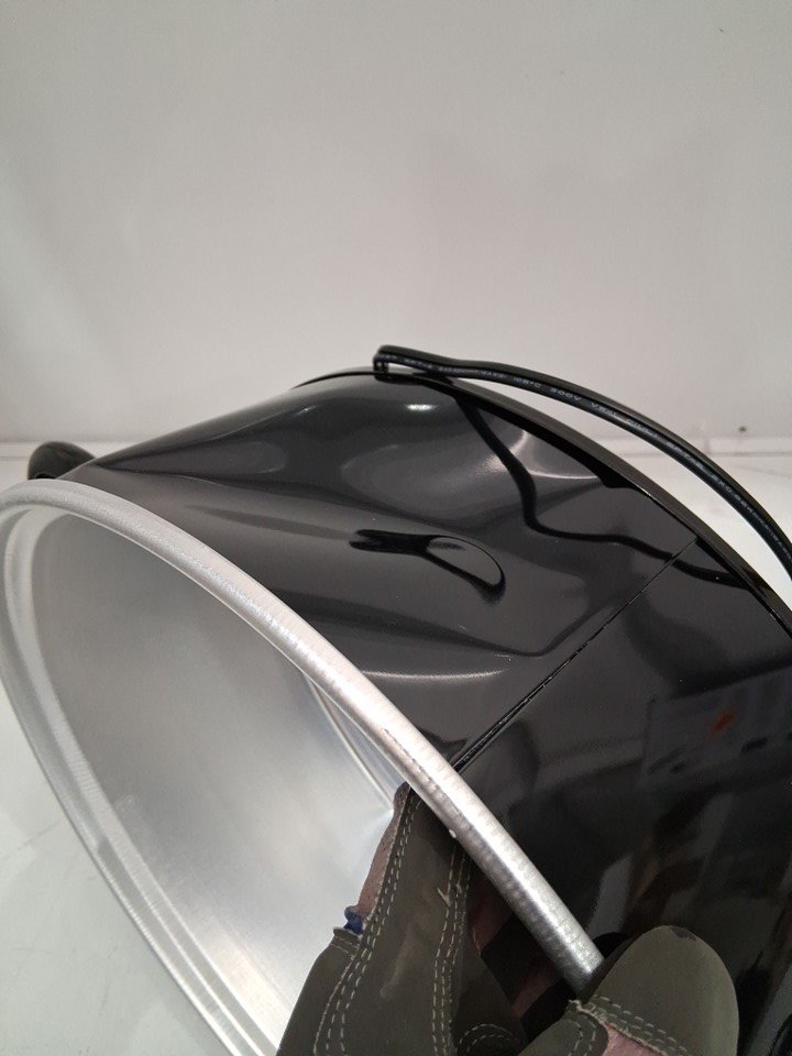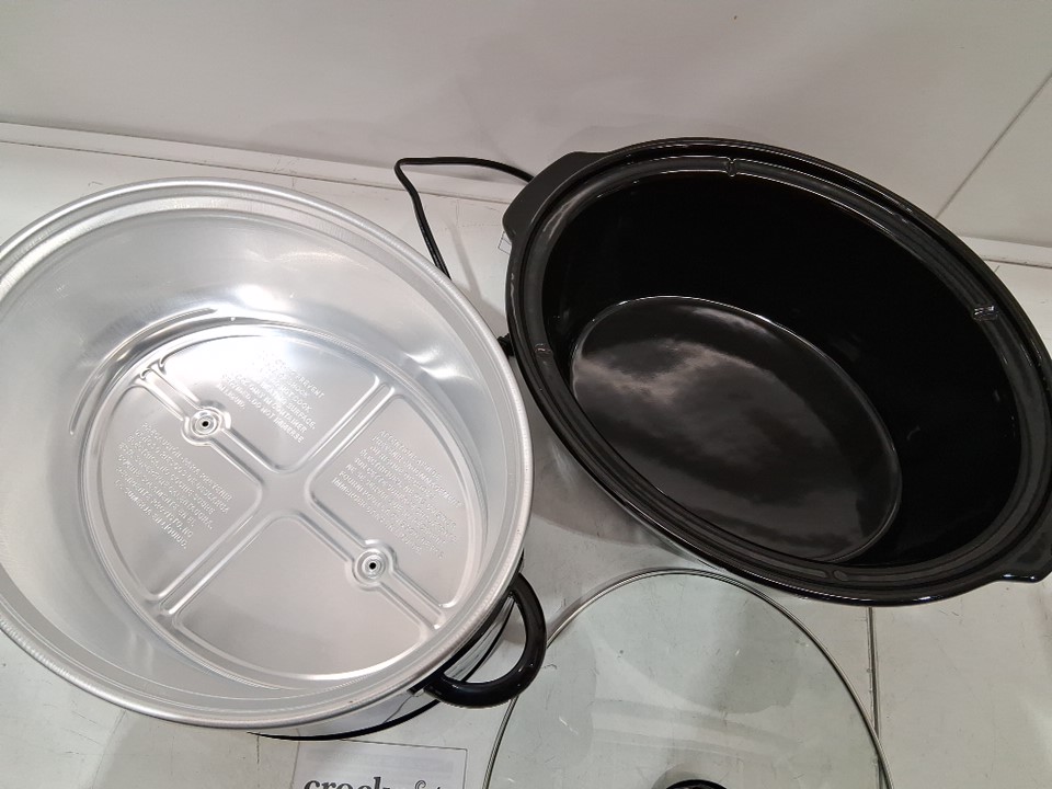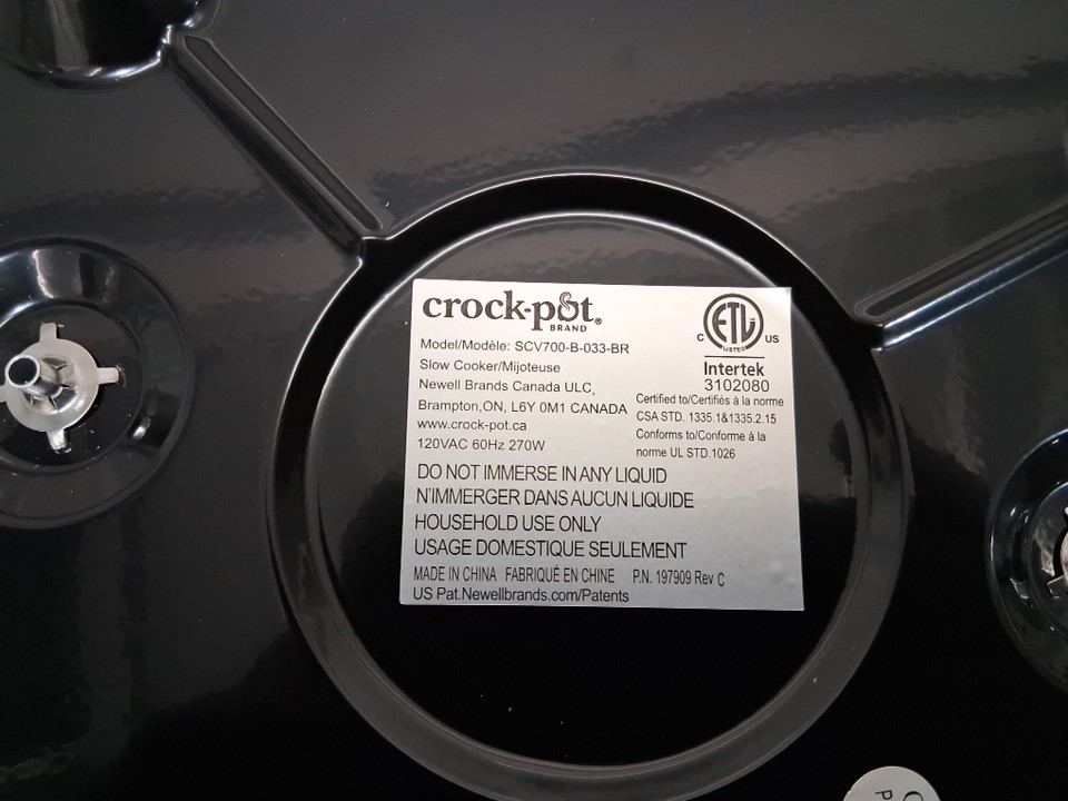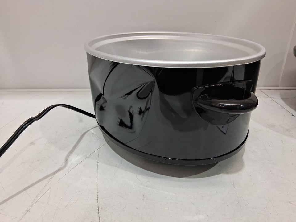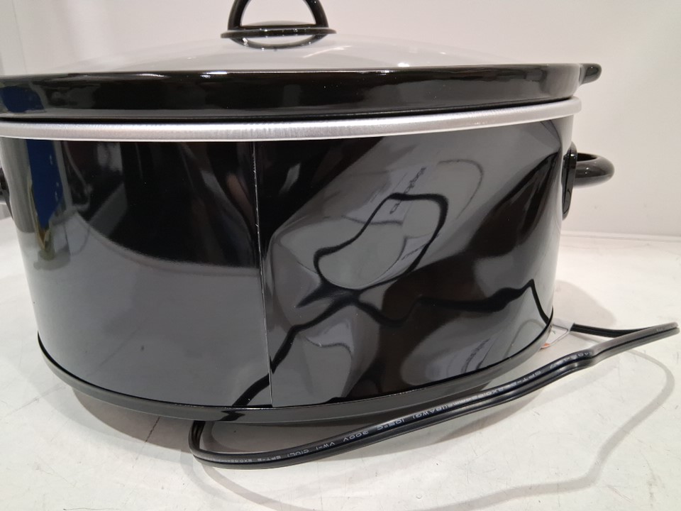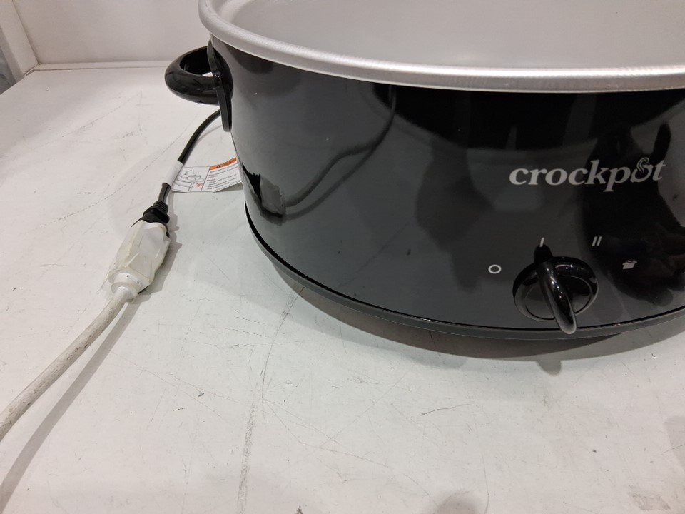 The back of the pot has a significant dent on the exterior only. It does not affect the function of the pot, nor the inside (see photos). Tested for power.