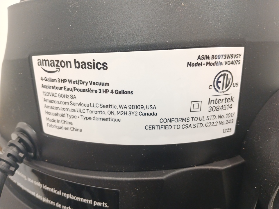 Stainless Steel Wet/Dry Vacuum - 4 gallon - 3 HP - Silver/Black (Model: V0407S)