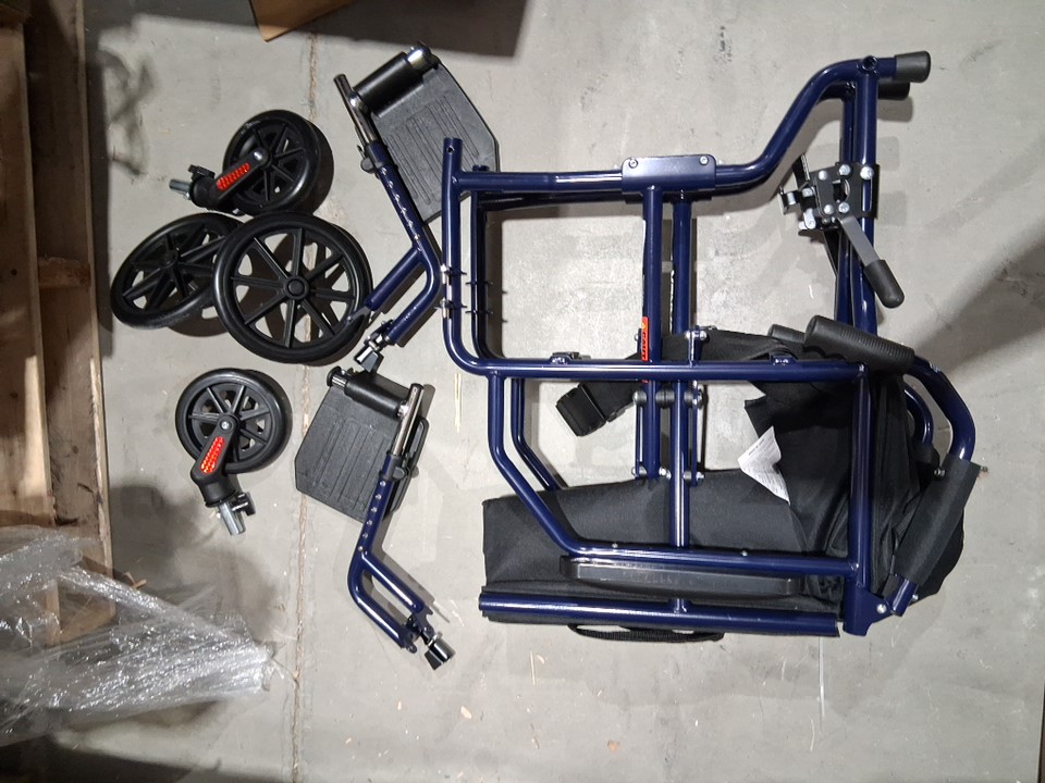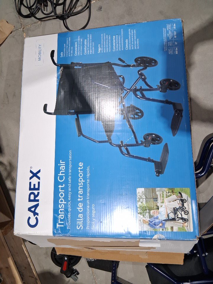 CAREX FOLDABLE TRANSPORT WHEELCHAIR - 300Lbs capacity - blue (model: a33677)