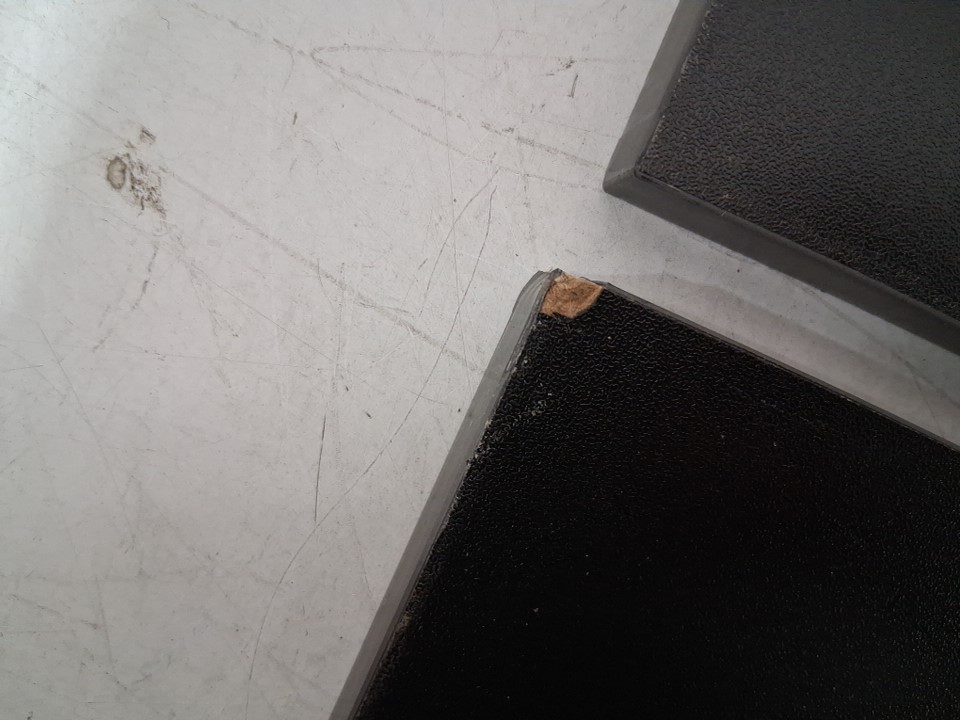 all of boards have distressed corners, one board has a white line on it ( see photos)