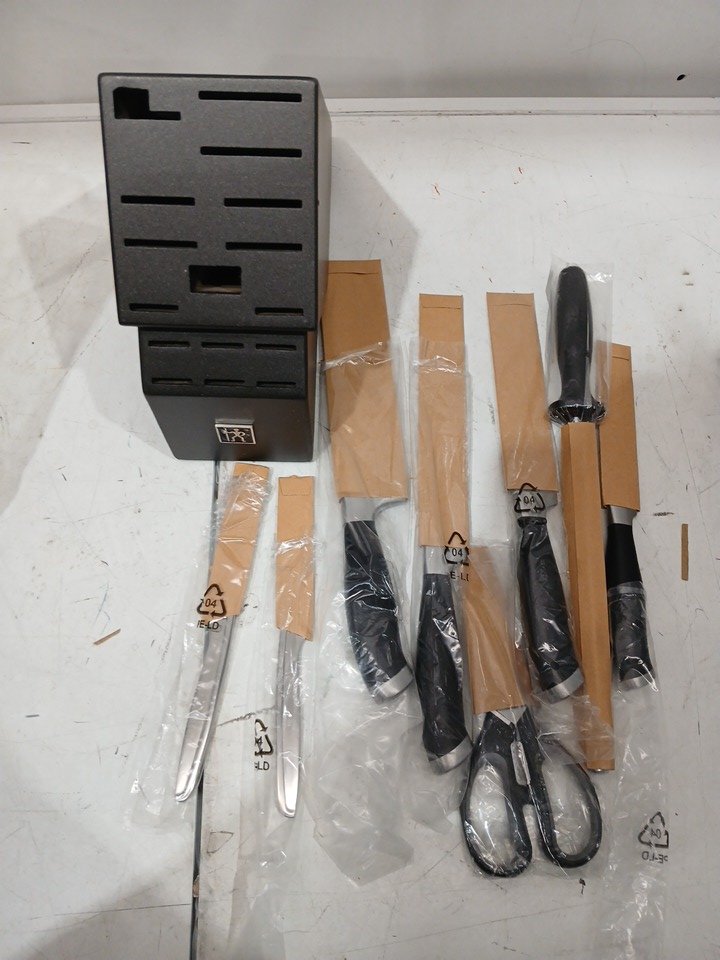 missing 6 knives: 4 steak, 5" serrated utility & 3" paring, though the set appears new otherwise