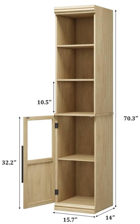 Garvee Tall Narrow Storage Cabinet with Open Shelves and glass door - 15.7" x 14" x 70.3" - natural (Model: PHO_33TMWHV/PHO_33TFHK7)