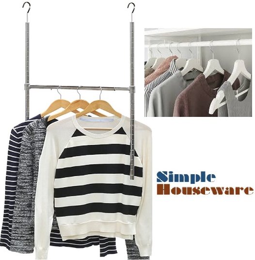 SIMPLE HOUSEWARE ADJUSTABLE HANGING CLOSET CLOTHING-HANGING ROD - 18"-30" - CHROME