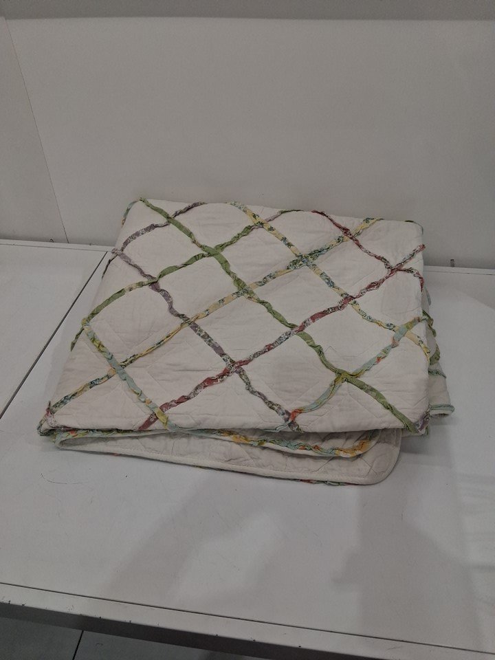 LAURA ASHLEY RUFFLED GARDEN 3D TEXTURE COTTON QUILT - twin SIZE, CREAM (MULTI) (MODEL: 197785)