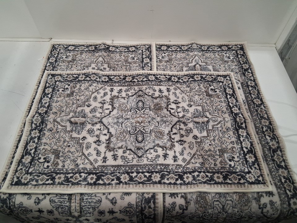 3PC HEBE FARMHOUSE NON SLIP KITCHEN RUG SET - 20"x 32", 20"x 48", 20"x 59" - BOHO/GREY