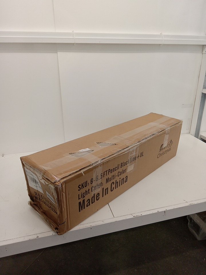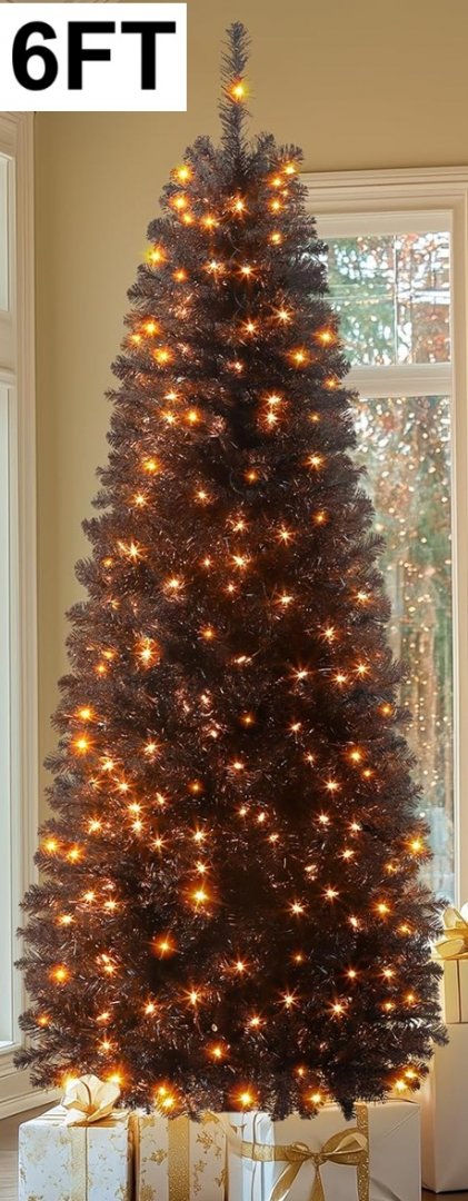 SHareconn Prelit Warm White Lights Artificial Hinged Slim Pencil Christmas Tree - 6FT - Black