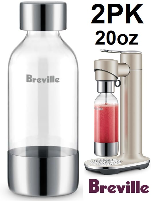 2pk breville infizz bottles compatible with the InFizz Aqua and InFizz Fusion - 20oz - Clear/grey (model:‎BCA002BSS0ZNA0)