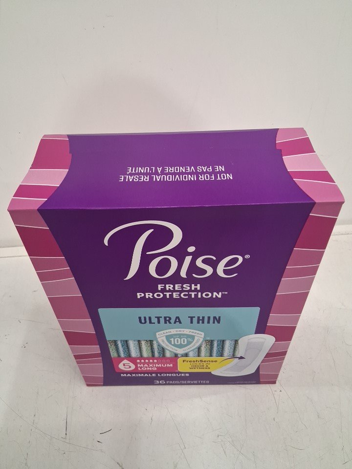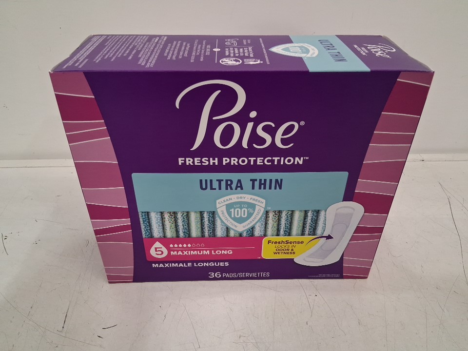 36PK POISE Fresh Protection Ultra-Thin Pads for Bladder Leaks - 5 Drop Maximum Absorbency - Long Length