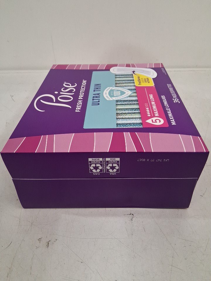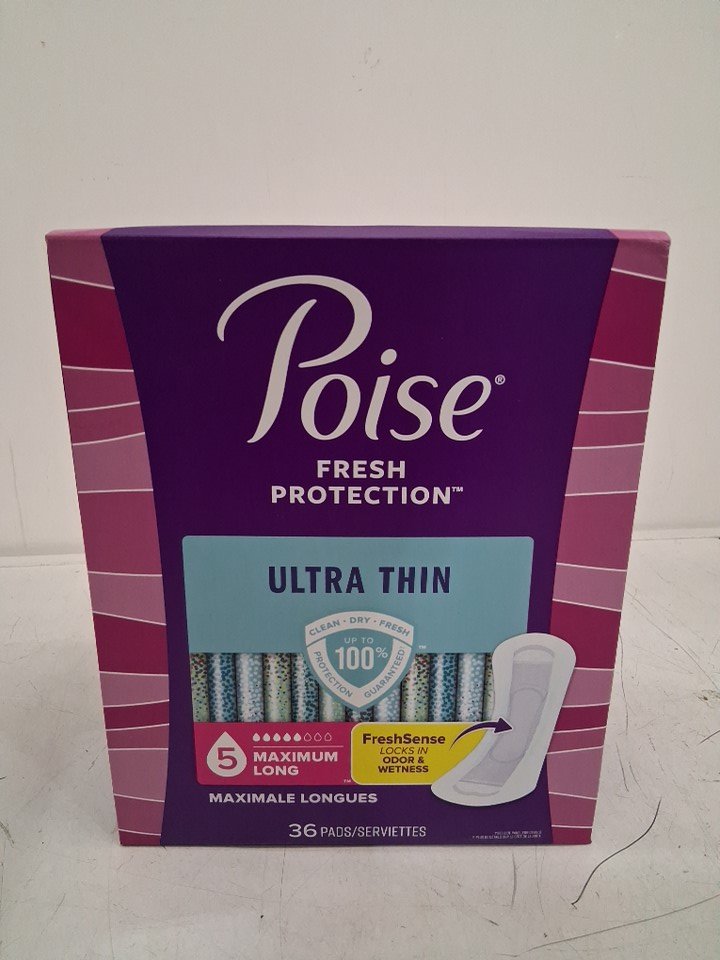 36PK POISE Fresh Protection Ultra-Thin Pads for Bladder Leaks - 5 Drop Maximum Absorbency - Long Length