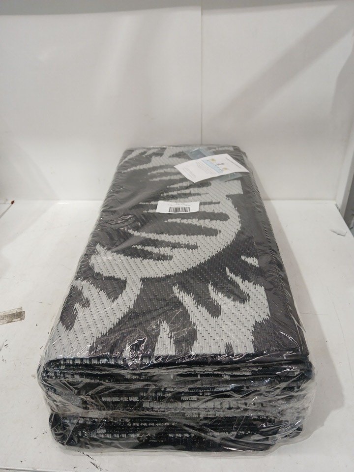 FLORAL Waterproof Outdoor Carpet Patio Rug - 9FT X 12FT - BLACK/WHITE/GREY (model: ca-ppg-zf-hb-9x12)