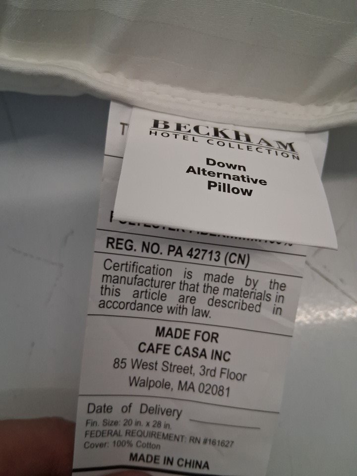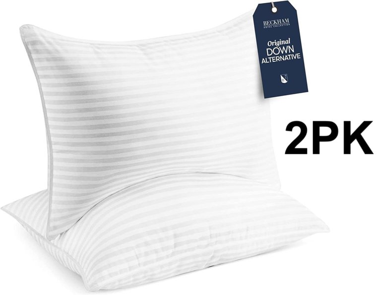 2PK 100% Cotton Beckham Hotel Collection standard machine washable Pillows - 20" x 28" - White