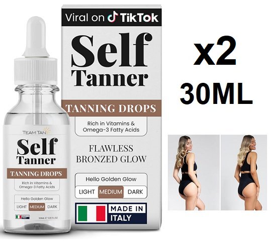 2 Team Tan Self Tanning Drops - Body and Face Tanning Drops - MEDIUM COLOR - 30ML - AS SEEN ON TIKTOK