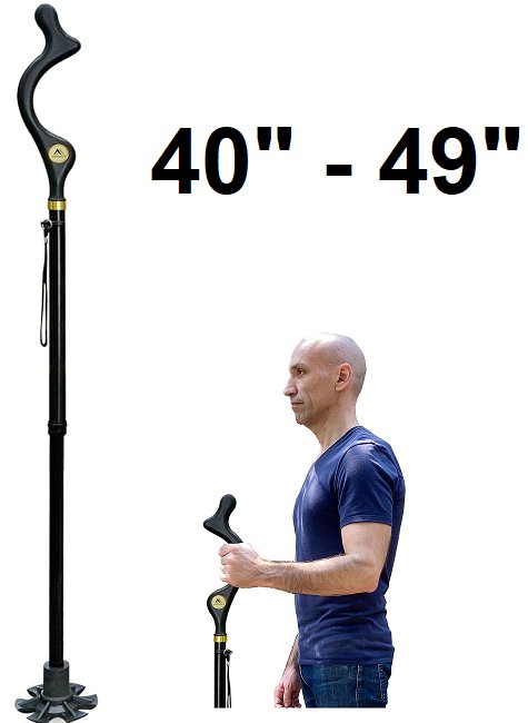 Adjustable height Posture and walking cane - 40" to 49" - black