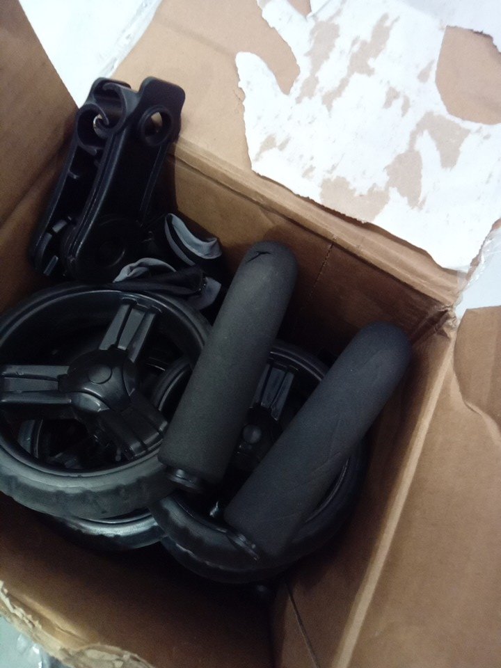 there is slight staining on the seat of the stroller and a rip on the handle. see photos.