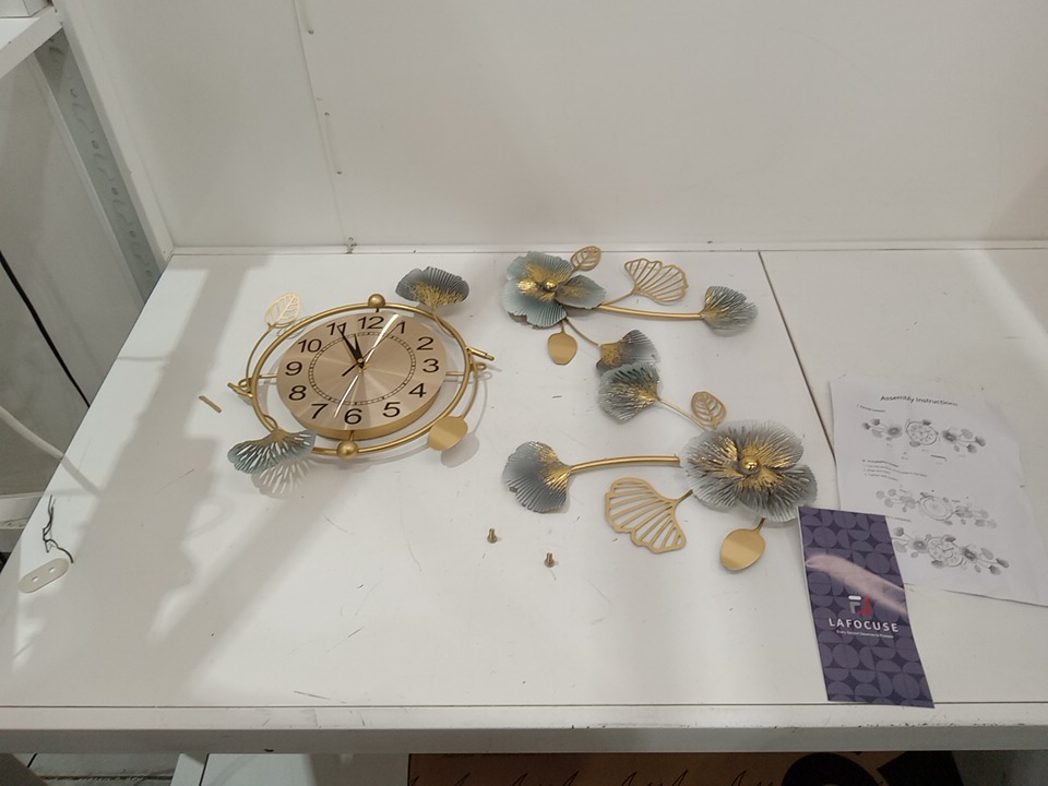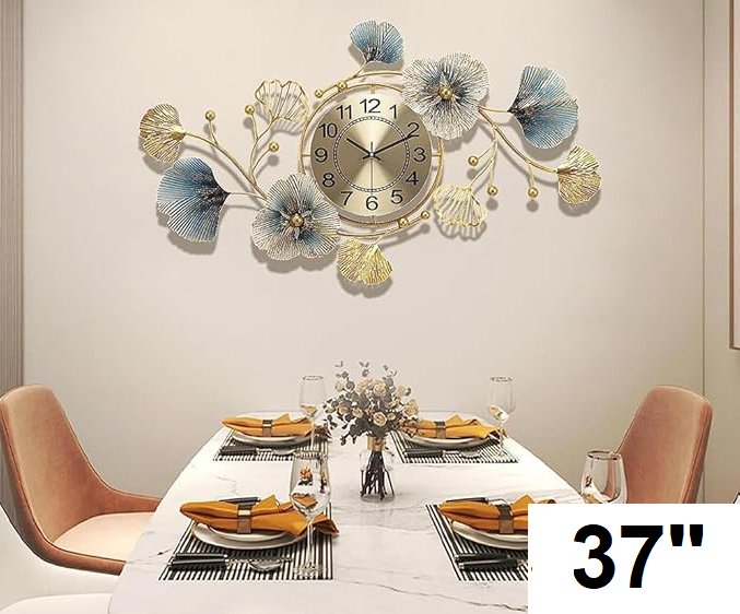 elegant wrought iron ginkgo leaves wall clock - 37" x 20.4" - gold