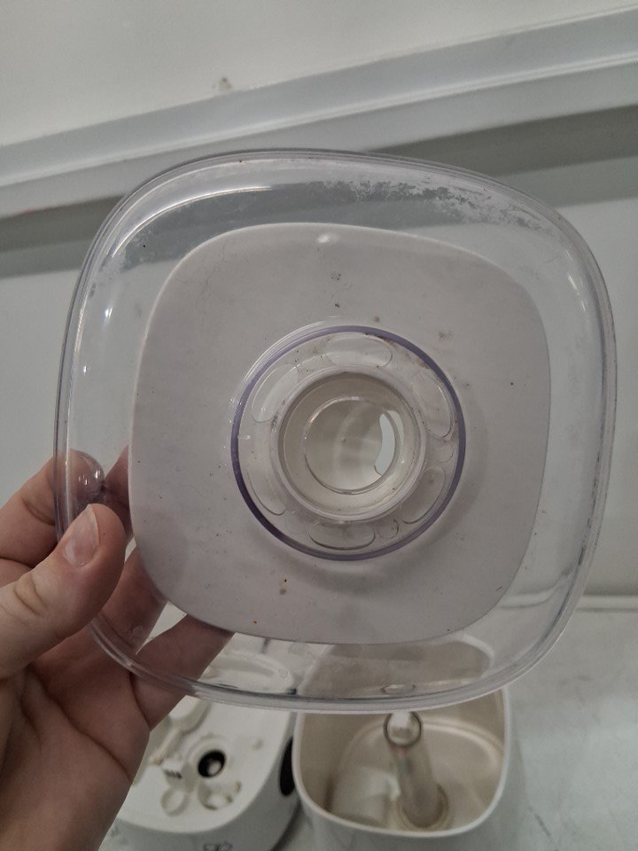 Item shows previous signs of use such as white markings and light discolouration inside/outside of unit. Item tested for power.