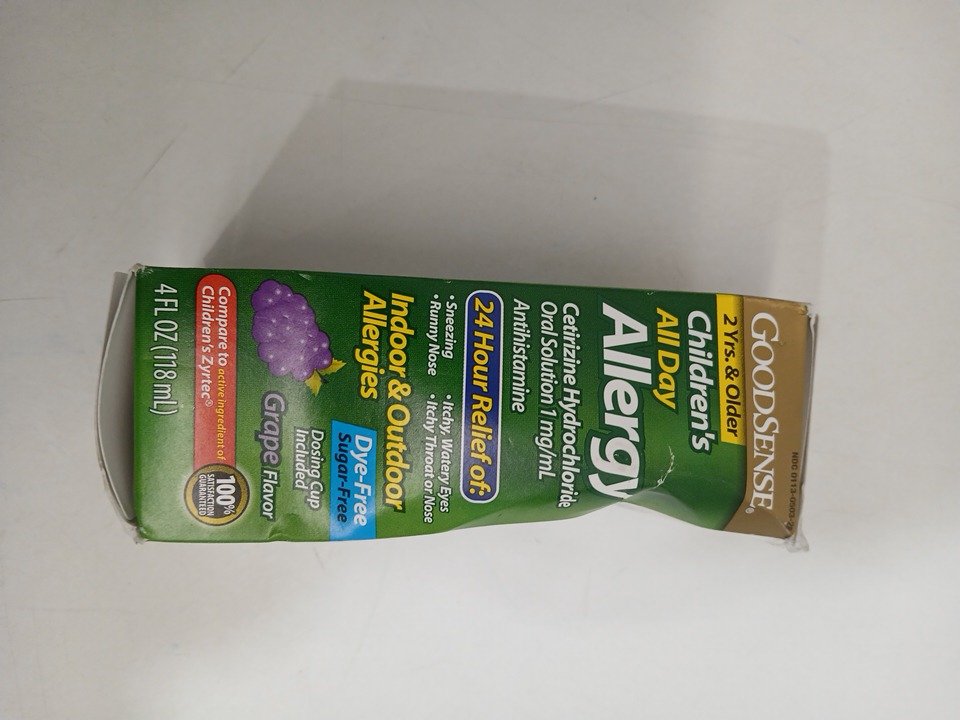 ** expires soon ** goodsense children's all day allergy 24hr relief cetirizine hydrochloride oral solution - 2yrs and older - grape flavour - 118ml