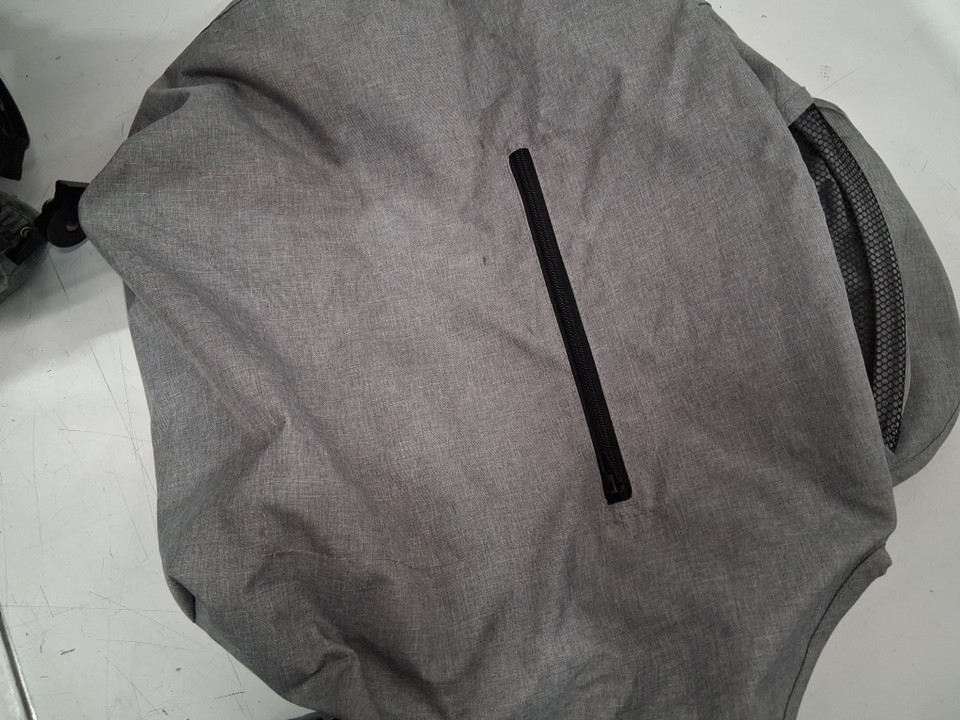 item has dirt, dust, debris, discolouration and a piece of the plastic part that locks the stroller while folded is broken - see photos