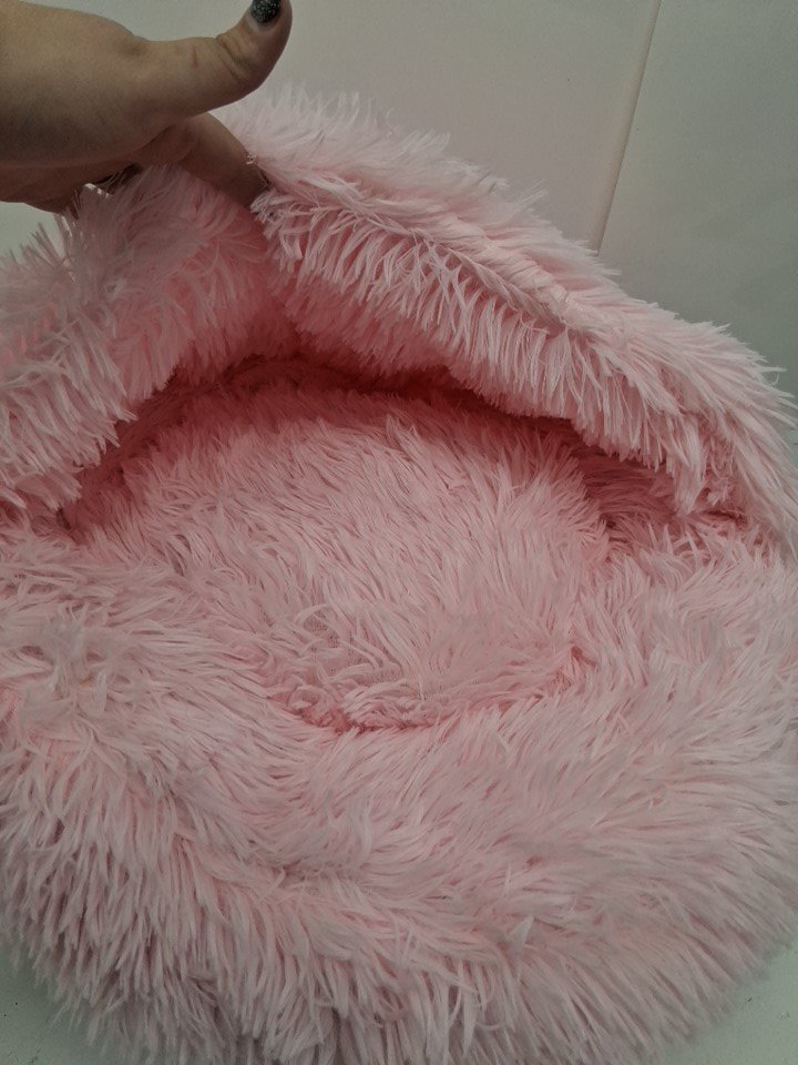Bed Round Fluffy Hooded pet Bed Cave - pink