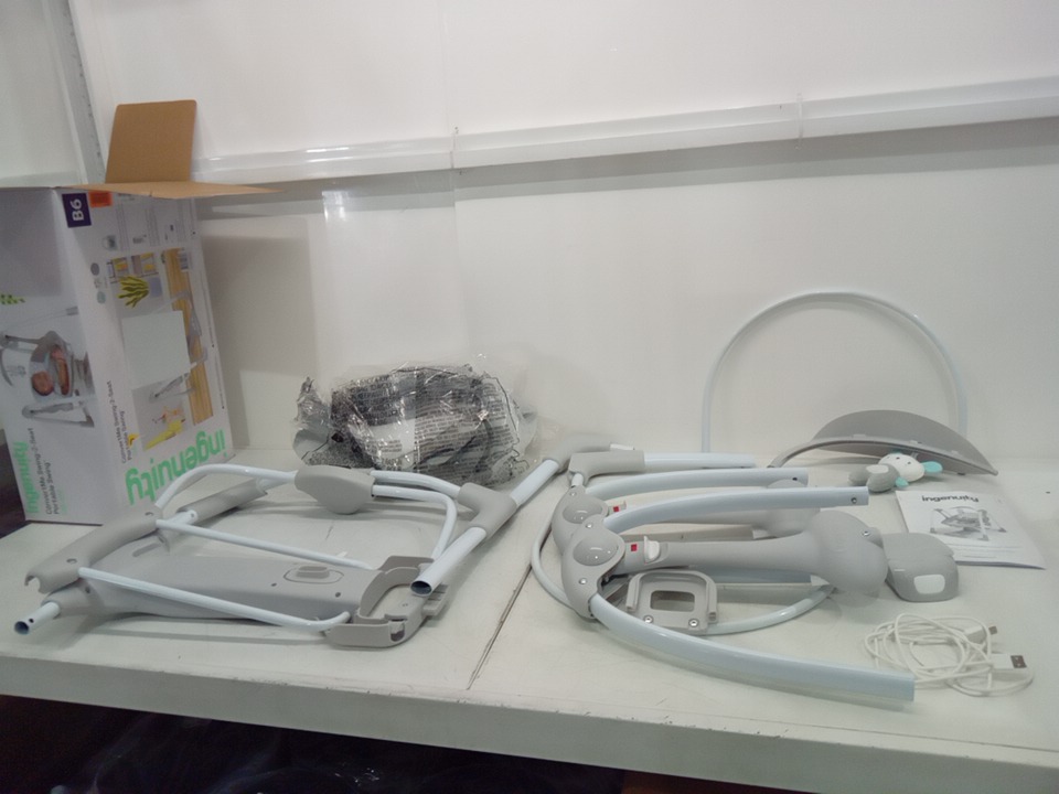 INGENUITY convertme 2-in-1 compact portable plug in automatic baby swing and infant seat - 0 to 9 months - 6lbs to 20lbs - grey (model: 12189-es)