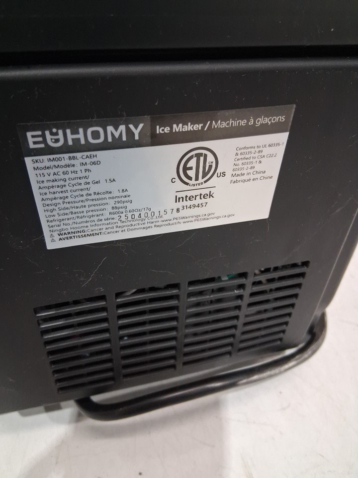 EUHOMY Countertop Ice Maker Machine with Handle/ Basket and Scoop - MAKES 26LBS Per Day - BLACK (MODEL: IM001-Bbl-CAEH)