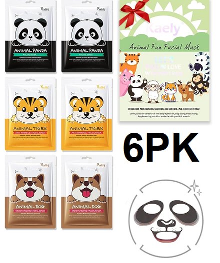 6pk kaely animal fun facial mask - assorted masks and animals