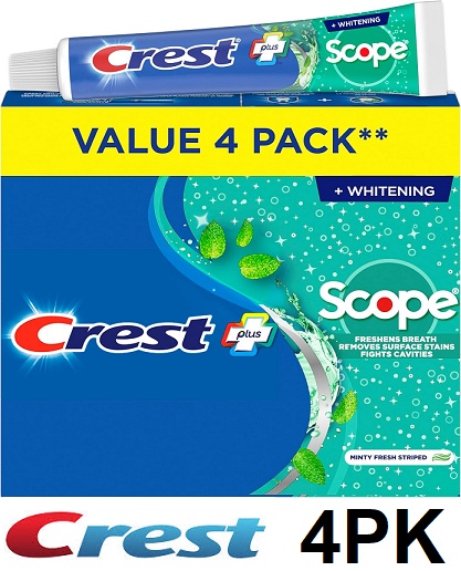 4pk crest complete plus scope whitening toothpaste tubes - 120ml each - minty fresh